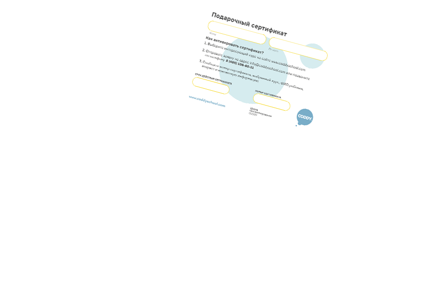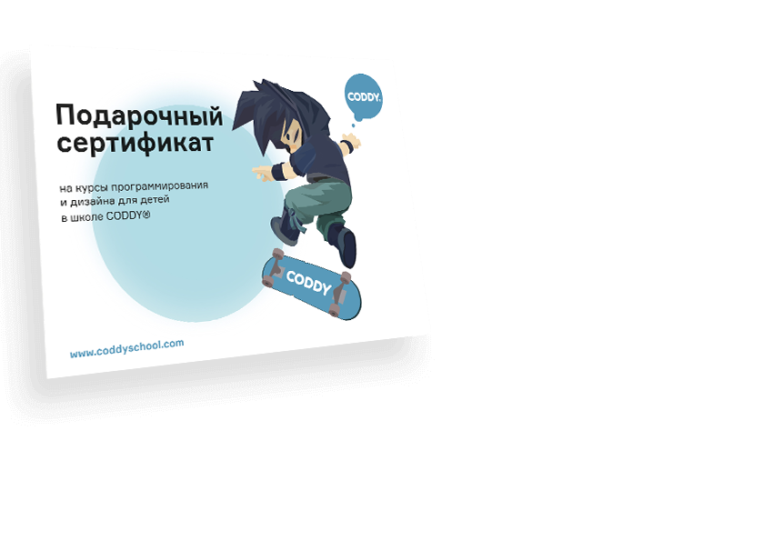 Школа программирования CODDY предлагает вам подарочные сертификаты на компьютерные курсы для детей от 9 до 17.